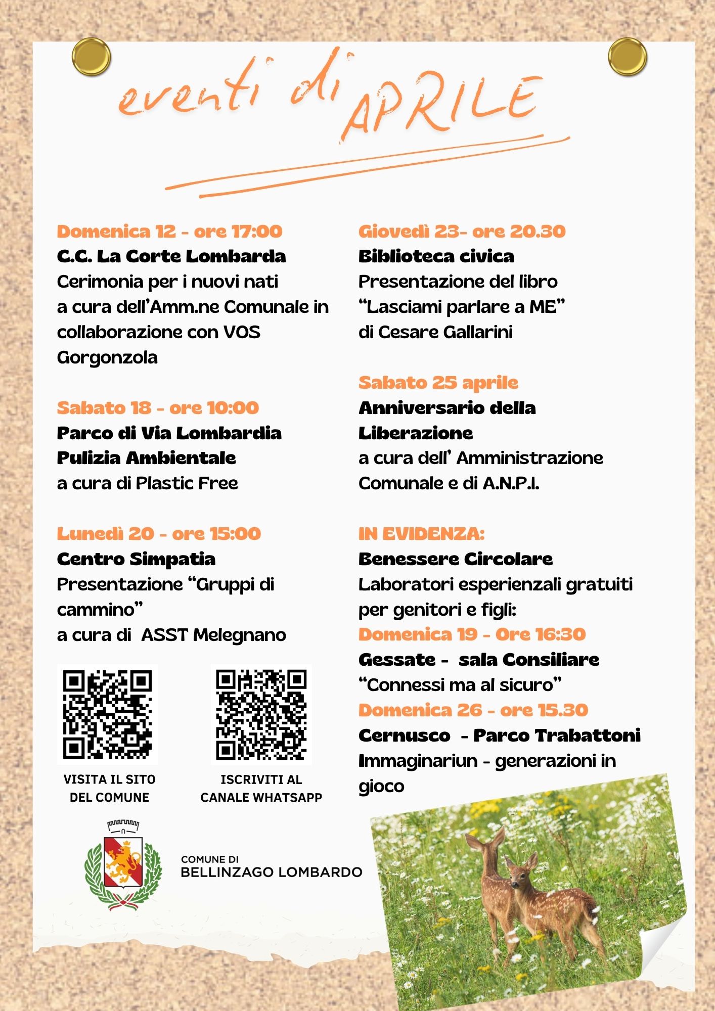 Tutti gli eventi di Aprile 2026 organizzati e/o patrocinati dall’Amministrazione comunale