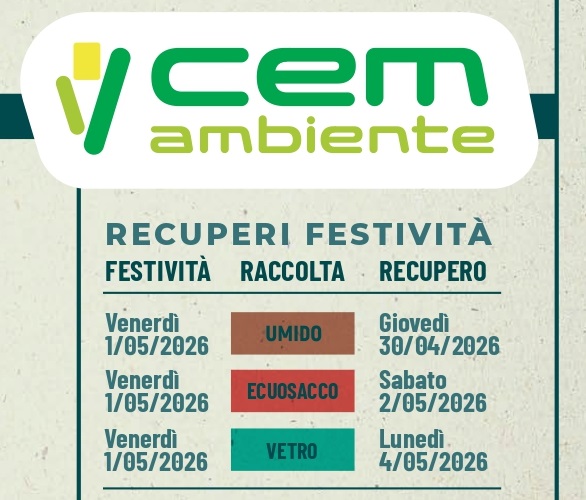 Come indicato sull’eco-calendario di CEM Ambiente, si ricorda che: