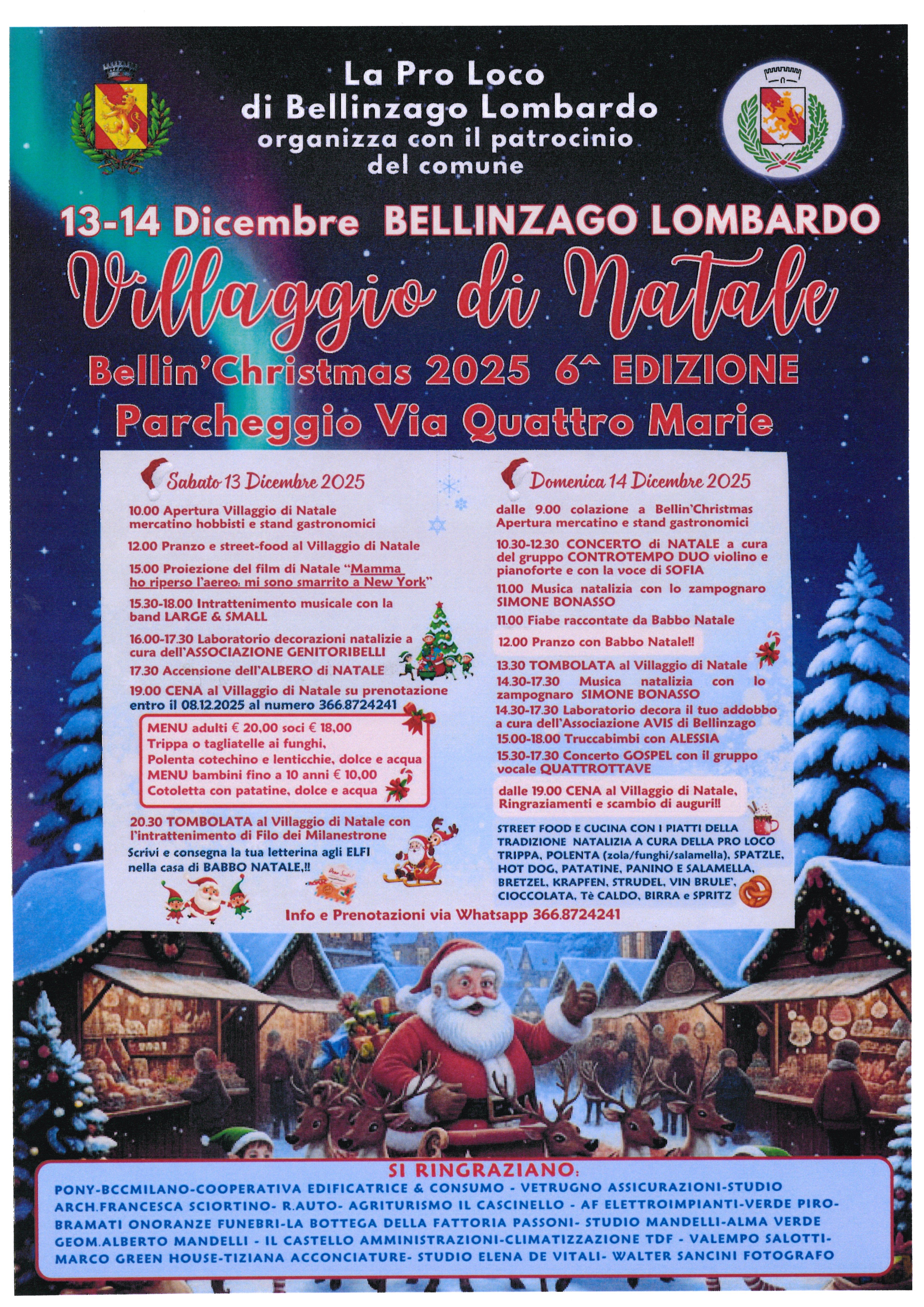 Evento “Villaggio di Natale – Bellin’Christmas 2025” a cura della Pro Loco