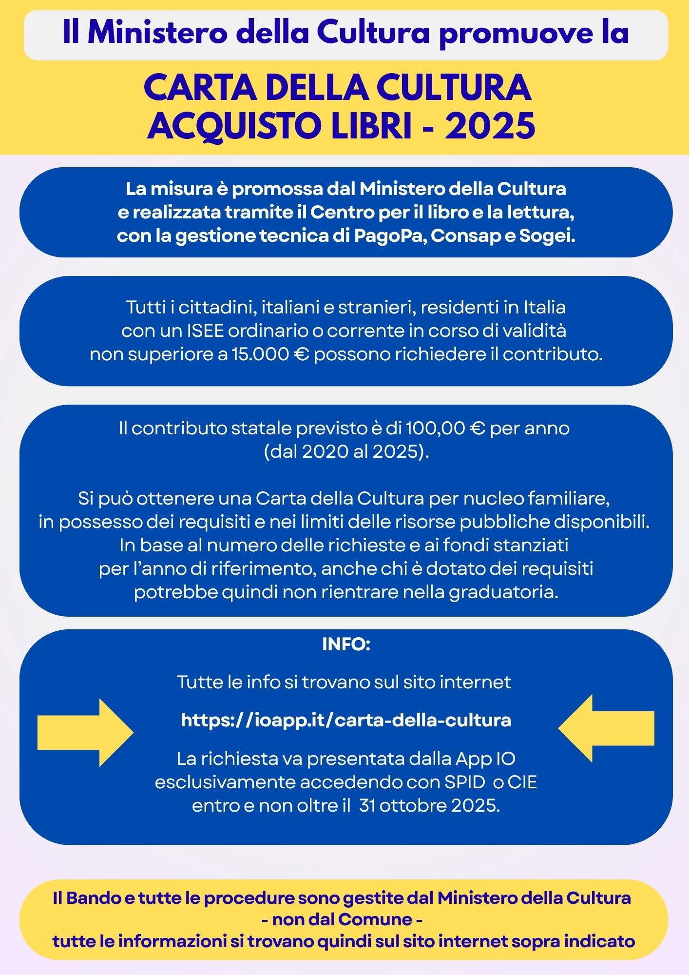 Il Ministero della Cultura promuove la CARTA DELLA CULTURA – ACQUISTO LIBRI – 2025